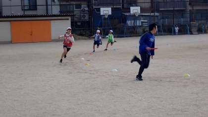 陸上部のお別れ試合では、リレー対決をしました。6年生チームと先生チームの対決は、予想以上に先生チームが力を発揮しました。「大人げない!!」という声をものともせずに、全力を発揮して優勝しました。6年生チームも一時は追い上げ、いい勝負になるかと思われましたが、先生の威厳を示す結果となりました。