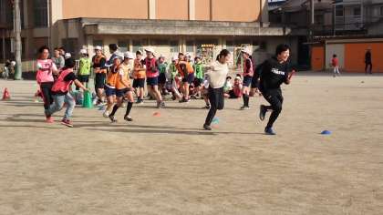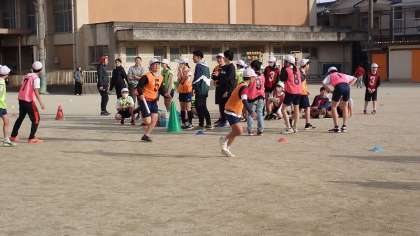 13日は、今年度最後の部活動の日です。陸上、バドミントン、音楽の3つの部活動がありましたが、運動系の部活動では、6年生と先生との「お別れ試合」が行われました。