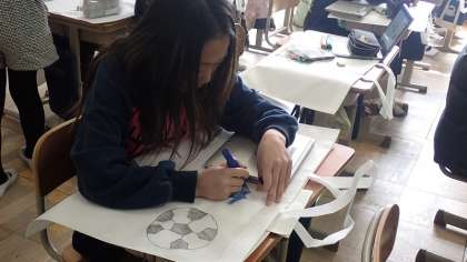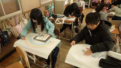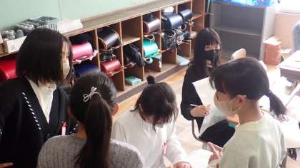 6年生は、この1年間の図工の作品を入れて持ち帰る「作品バッグ」に絵を描いています。6年生の思い出や自分の好きなものなど、思い思いの絵を描いていました。