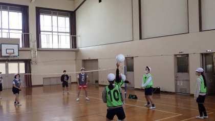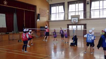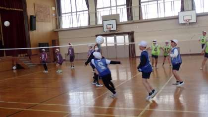 5年生は、体育の「ソフトバレーボール」の学習をしています。