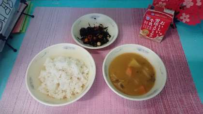今日は、今年度最後の給食でした。給食調理員さんは、1年間子どもたちが元気に学校生活を送ることができるよう、栄養いっぱいの給食をつくってくださいました。6年生にとって小学校生活最後の給食は、子どもたちの大好きな「カレー」でした。