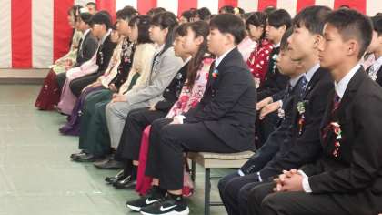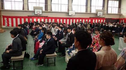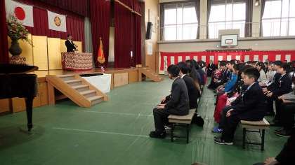 卒業証書授与に続き、校長先生の式辞をいただきました。壇上の校長先生をしっかり見て、自分たちに贈られるメッセージを胸に刻みました。