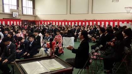「卒業の言葉」の後、保護者の皆様、ご来賓の方々、教職員の大きくあたたかい拍手に見送られ、会場を後にしました。