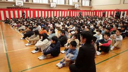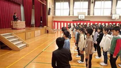 その後、校長先生からのお話がありました。この1年間、子どもたちががんばってきたことをふり返り、4月からの新たな学年でも挑戦することの大切さについてお話しくださいました。