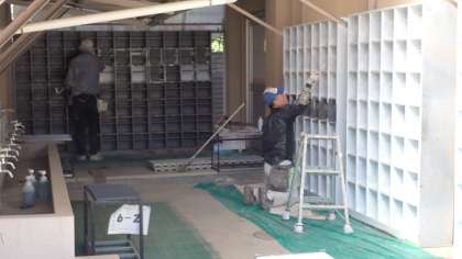 錆を落として下地塗装をしたうえで、明るい色に塗り直していただきます。新年度には明るくきれいになった靴箱がお目見えします。