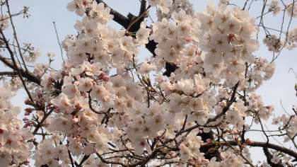 4月に入ってからの暖かさで、中庭の桜も一気に華が開きました。週末には、満開を迎えそうです。