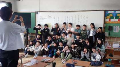 5年生の目標を立てて自己紹介カードに書いたり、クラスのみんなで1年間のスタートの記念写真を撮ったりしています。みんなにこにこと、とてもよい表情です。