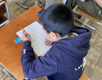 いよいよ各クラスでの勉強が少しずつ始まっています。クラスはじめましての友だちと打ち解けあえるようにアイスブレイキングが行われていました。先生から出されたお題を列の後ろまで伝える伝言ゲームで盛り上がっていました。