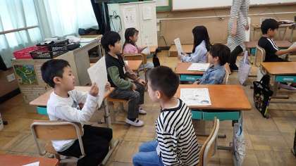 今日は、ひとりひとりの自己紹介カードを書きました。書いた後は、近くの友達と自己紹介をし合いました。新しく同じクラスになった友達とも、早くなかよしになれるとよいですね。