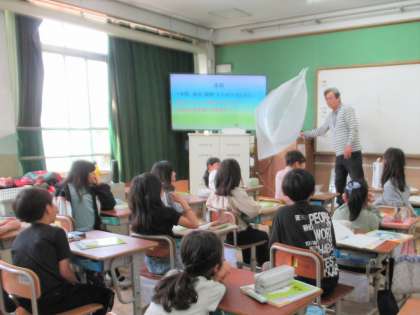 今週から理科の学習が始まりました。初めの学習は、教科担当の先生に4年生の理科の話を聞いたり、ミニ実験をしたりしました。