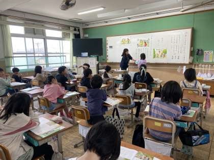 子どもたちは教科書のお話を聞いて、自分の考えをみんなの前で発表したり、グループで意見を交流したりしていました。友だちと意見を話し合うことで、自分にはない考えに触れることができた子もいたようです。