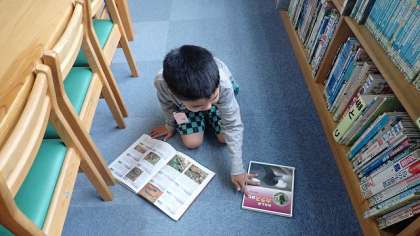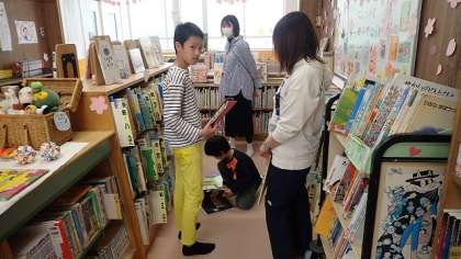 ほんのもりへ行きました。新しい本も増え、どれにしようか悩んでいました。電車の本や動物図鑑、絵本など、それぞれ自分の興味のある本が見つかったようです。借りてきた本は朝読書やちょっとした時間に読んで、様々な本に親しんでいってほしいと思います。