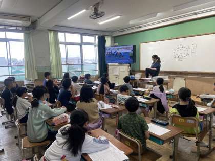 今日は雨が降っていたので、予定していた体育「リレー」の学習は残念ながら外ではできませんでした。子どもたちは、教室でリレーのポイント動画を見て、どうすればタイムを縮めることができるのか学んでいました。走り方や、バトンを渡すときの渡し方、テイクオーバーゾーンの有効活用などいろいろなポイントに気付くことができたようです。次回、外で走るときに、今回の学びをぜひ生かして、ベストタイムが出るよう頑張ってほしいです。
