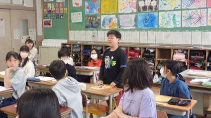 昨日の朝会で校長先生が日本国憲法の3つの柱についてお話しくださいましたが、今日は、その中の「平和主義」について憲法第9条の学習をしていました。第2次世界大戦で唯一の被爆国となった日本が掲げる「非核三原則」についても調べました。核兵器を「もたない」「つくらない」「もちこませない」という3つのキーワード、しっかり覚えられたかな。
