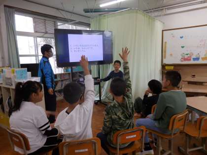 お誕生日会をしました。飾りつけをみんなで楽しみ、ホワイトボードいっぱいに絵を描いたり、貼ったりしていました。クイズ大会では、一人ずつ考えたクイズを発表しました。それぞれの好きが詰まったクイズで、盛り上がりました。