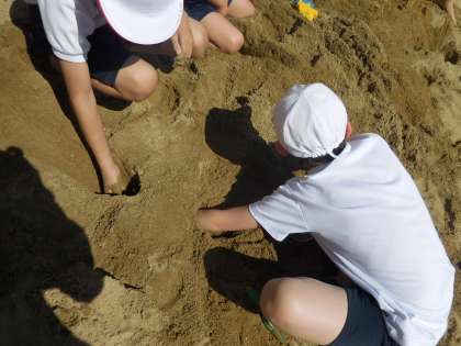 道が繋がると、嬉しそうに友達と手を繋いで、「よろしくね。」と声をかけていました。握手の次には、足も合わせて笑い合っていました。