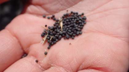 今日は、5年生になってはじめの単元で学習した「アブラナ」の種子を集めました。細長い殻の中からは、黒い小さな種子がたくさんとれました。とてもたくさんの種子が取れたので、来年の春には、梅津小学校はアブラナの黄色い花でいっぱいにできるかもしれないですね!