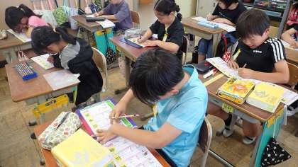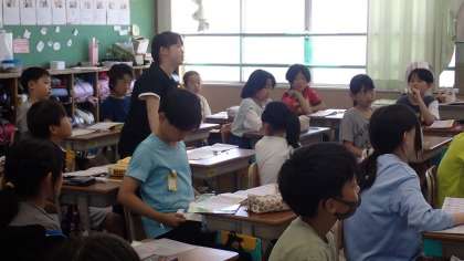 みんなで、字形やその漢字を使った熟語などについて確かめた後、ドリルに書き取りをしています。じっくりていねいに書くことで、一度でしっかりと覚えられるようにがんばっていきたいですね。