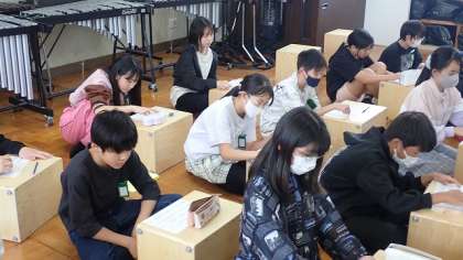 6年生は、音楽の「いろいろな音のひびきを味わおう」の学習をしています。