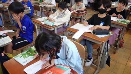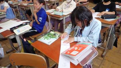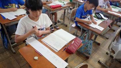 その後、子どもたちが考えたいろいろな文を交流しました。中には、課題以外の漢字も音読みと訓読みを使って、文を書いている子もいました。