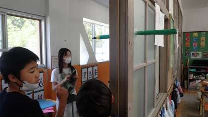 校舎のいろいろな場所に、子どもたちの自由な発想が表現されています。しばらく展示していますので、たくさんの人に見てもらいたいと思います。