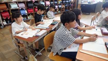 今日は、1cmを10等分した長さについて学習しました。「1mm」と書き、「1ミリメートル」と読むことが分かりました。はじめて書く「mm」という単位を、ていねいにノートに書いていました。
