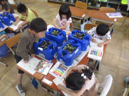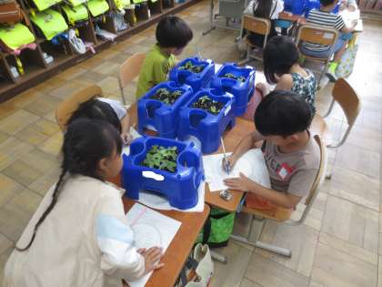 毎朝水やりをして、芽が出るのを楽しみにしていた1年生。