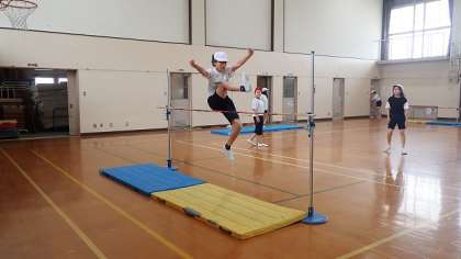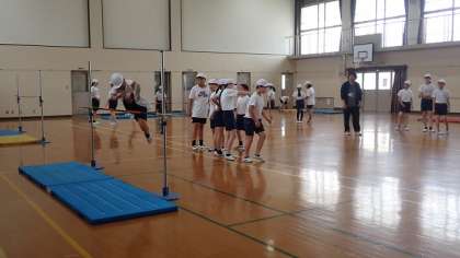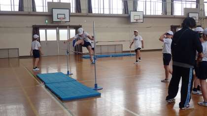 6年生は、体育の「走り高とび」の学習をしています。