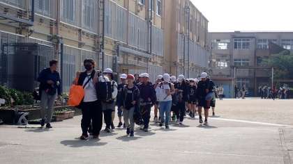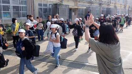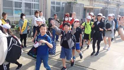 見送りに来ていただいた保護者の方や、あいさつ運動で来られていたPTAのみなさん、見送りの教職員に、「いってきます」のあいさつをして出発しました。
