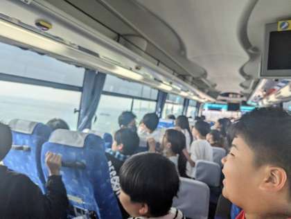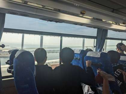 9時45分頃には、明石海峡大橋を渡りました。みんな、海と大きな明石海峡大橋に大盛り上がりです。