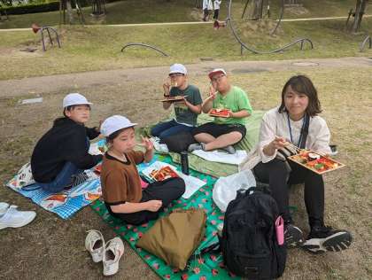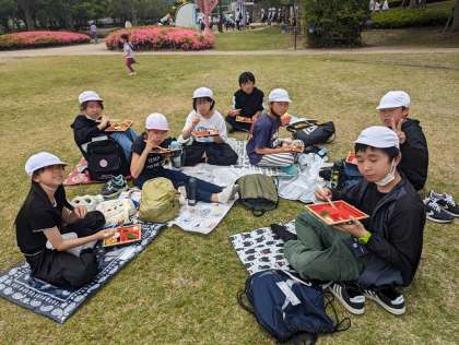 芝生の上で、みんなで一緒にお弁当をいただきました。