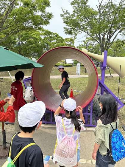 「あすたむらんど徳島」は、子ども科学館、吉野川めぐり(ウォータースライド)などがあるテーマパークです。ここではグループ行動で順にまわっていきます。
