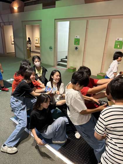 みんなで力を合わせると、どれくらいの力がだせるかな?ということで、みんなで一生懸命引っ張りました。
