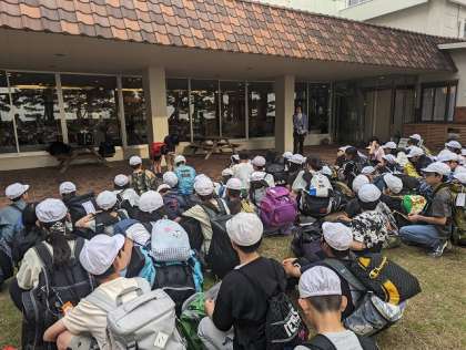 17時に、予定通り宿泊する「慶野松原荘」に到着し、入所式を行っています。