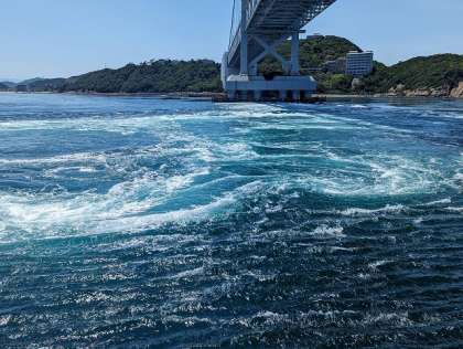 大鳴門橋の下を通過します。うずしおの大きさも最大級です。
