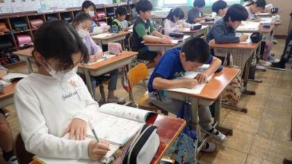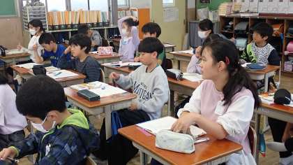 5年生は、算数の「小数のかけ算」の学習をしています。