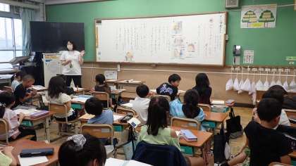 2年生は、道徳の「ありがとうって言われたよ」のお話を読み、3回も「ありがとう」と言われたことを家に帰ってお母さんに話すぼくの気持ちを考えることを通して、人に親切にすることの喜びに気付き、進んで親切にしようとすることの大切さについて考えました。