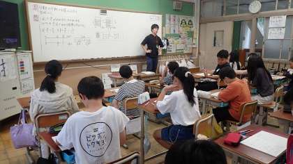 6年生は、算数の「分数×分数」の学習をしています。