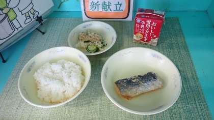 「さわらのたつたあげ」は、春に旬を迎える鰆(さわら)をからっと竜田揚げにしています。ふわっとした鰆の白身のやわらかさと、かりっとしたころもを一緒に楽しんでいただきました。「野菜のささみごまだれがけ」は、新献立です。シャキシャキした野菜に、ささみとすりごま、みそ、さとう、みりん、料理酒、米酢、しょうがを合わせてつくったごまだれをかけて食べます。ごまだれは、野菜との組み合わせがとてもよく、うま味や香りを楽しんでおいしくいただきました。