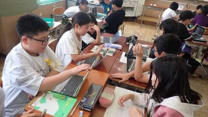 社会を取り巻く様々な環境問題から追究したいテーマを決め、調べ学習に取り組んでいます。同じテーマを選択した友達同士で、自分たちが調べたことを交流しました。