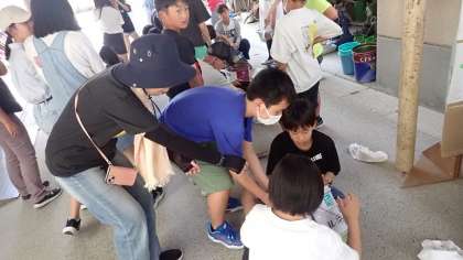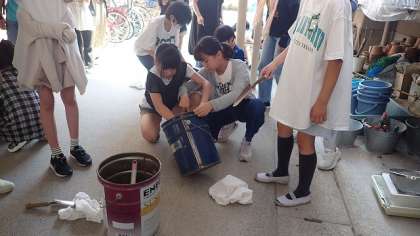 これから毎日昼休みにかき混ぜる作業を行います。今日も、まちづくり委員の方が来てくださり、子どもたちの活動を見守ってくださいました。