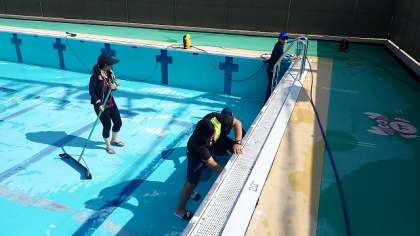 6年生が引き上げたあと、教職員で最後の仕上げをしました。