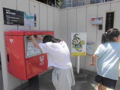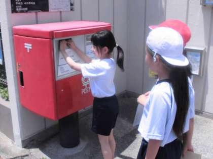 希望した子は、学校で切手を貼って学校前のポストから手紙を投函しています。「無事届きますように!」気持ちを込めながら、ゆっくりとポストに封筒を入れる可愛い様子が見られました。
