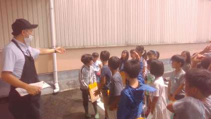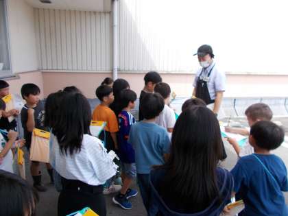 最後に、インタビューをしました。「どんなことを意識して仕事をされているか。」「商品はどのくらいあるのか。」など、たくさんの質問に答えていただきました。子どもたちは聞いたことをメモにとり、これからの学習に生かそうとしていました。