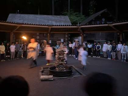 みんなが営火場に入場しました。そこに、花背の山に住む「火の神」が4人の「火の子」とともに登場しました。