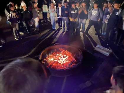 あれほど激しく燃え盛っていた炎も穏やかになり、キャンプファイヤーも終わりの時が近づいてきました。