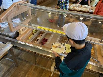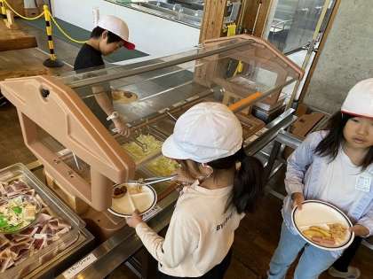 朝食の様子です。食堂の利用の仕方にも慣れ、てきぱきと準備を進めています。