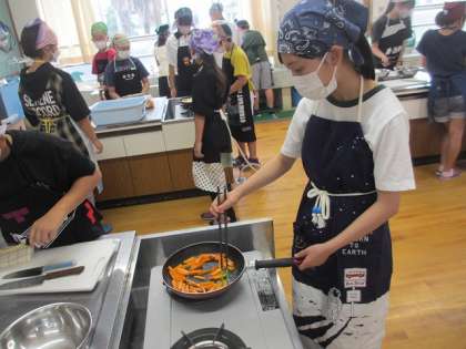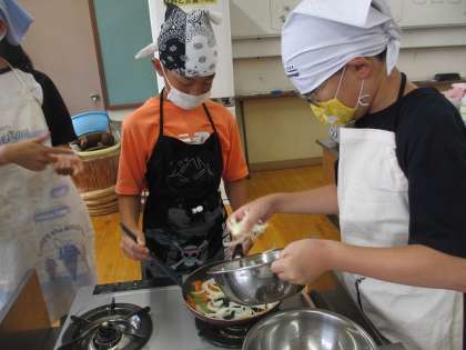 切った食材は、いためる順番にも気を付けて調理をしました。