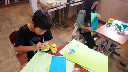 3年生は、図工の「うごいて楽しいわりピンワールド」の学習をしています。