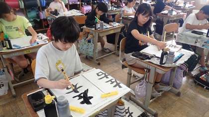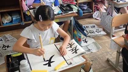 4年生は、習字の学習をしています。今日、書いているのは「左右」の2文字です。